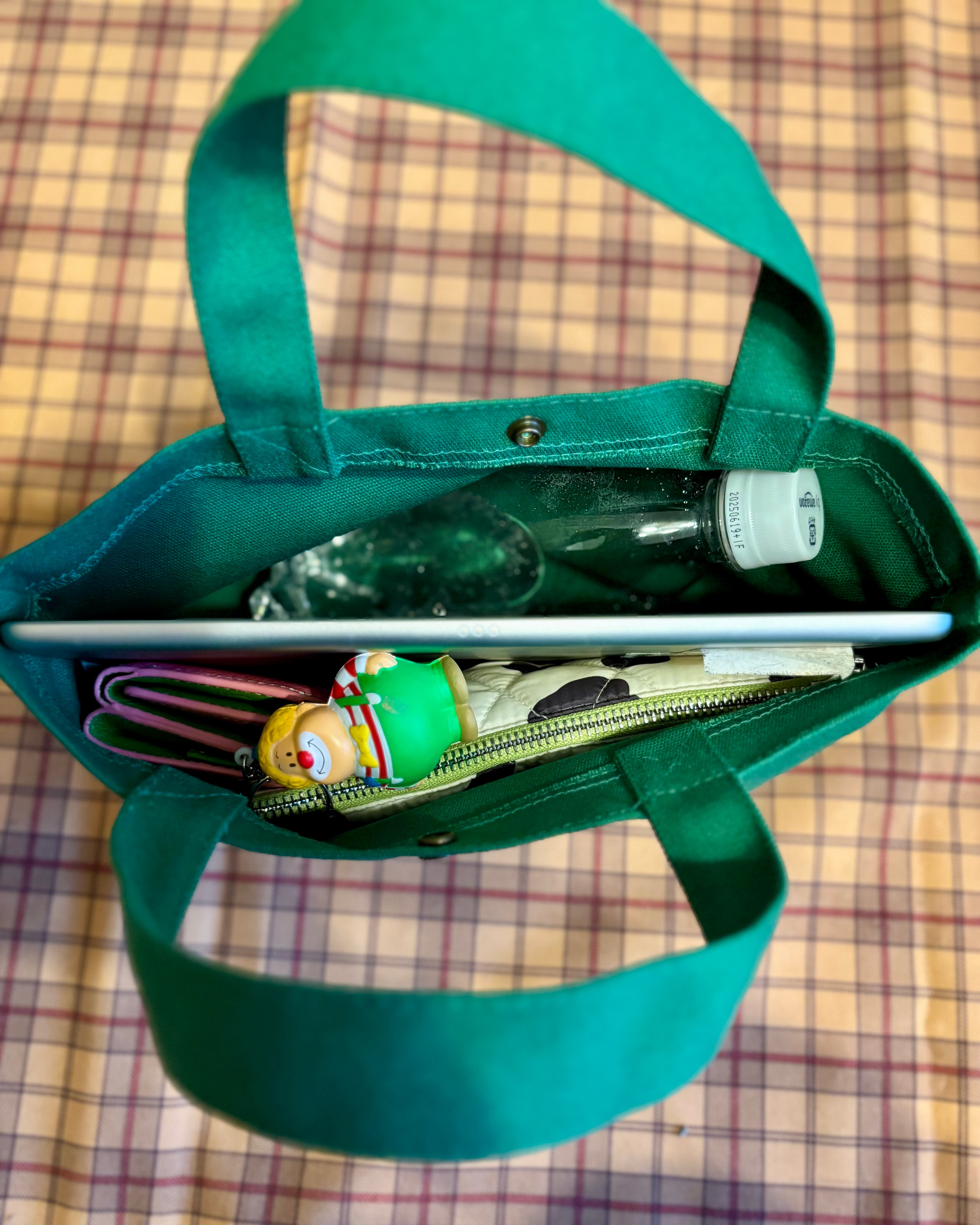 500mlのペットボトルやiPadなどが入るのでランチバックやお出かけのときにお使いいただけます。