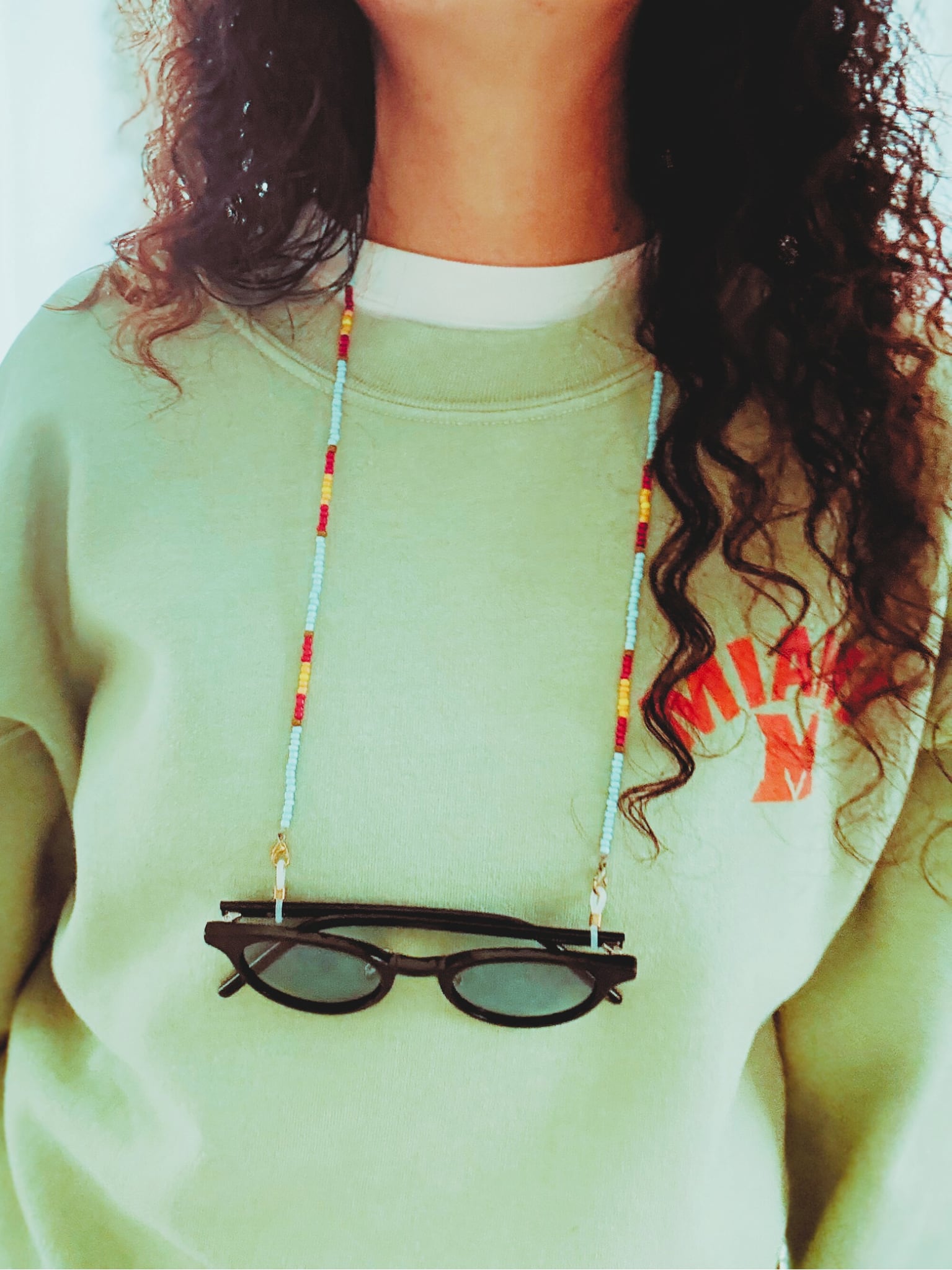 素材:シードビーズ・シリコン(メガネ留め)・ワックスコード