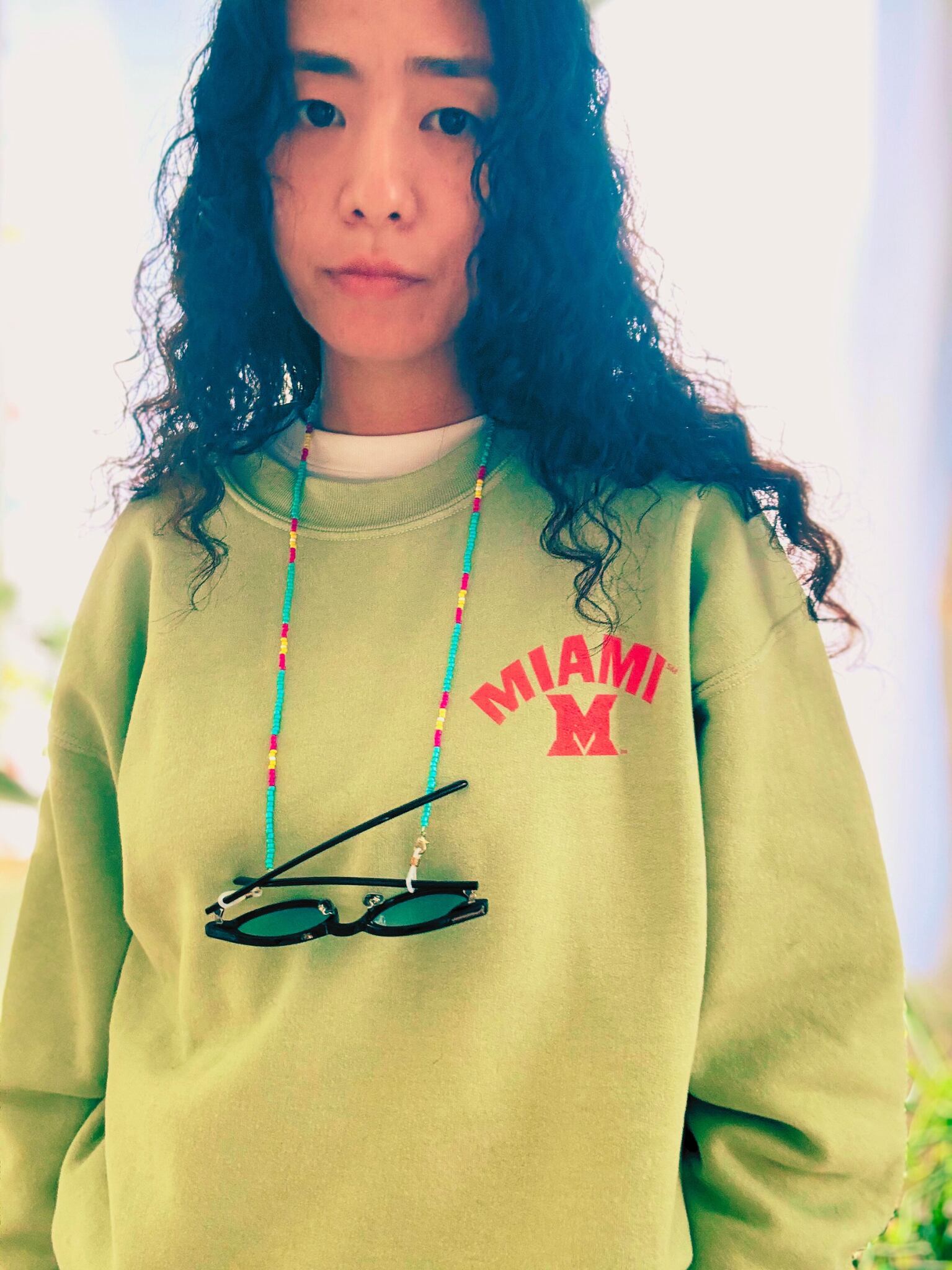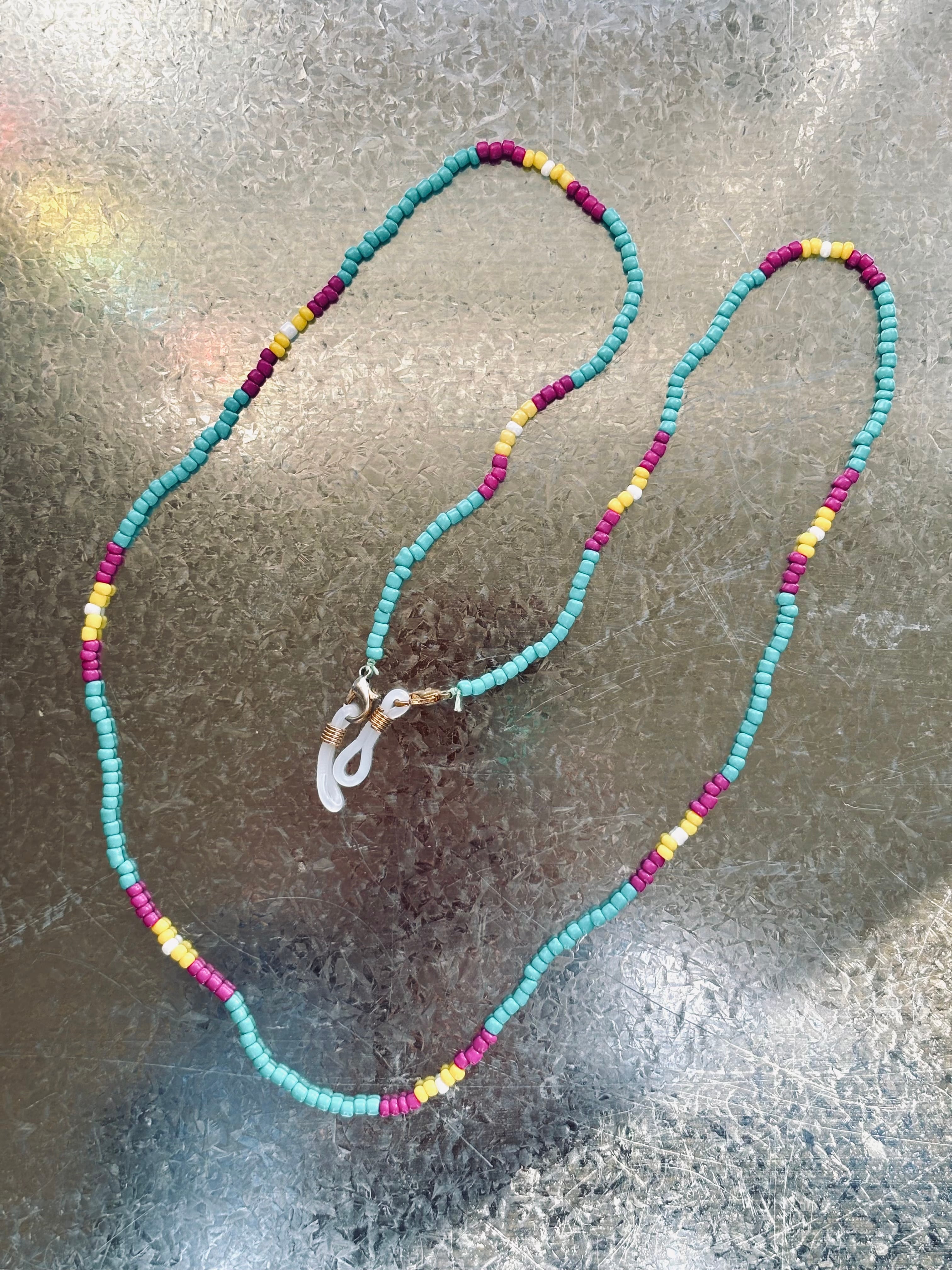 素材:シードビーズ・シリコン(メガネ留め)・ワックスコード