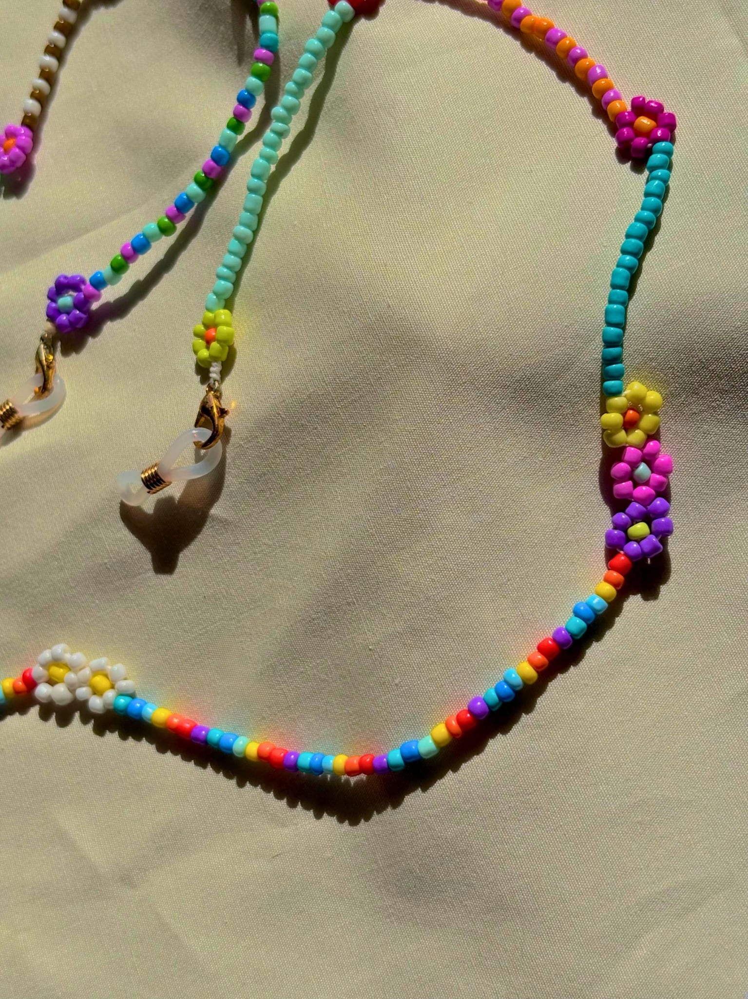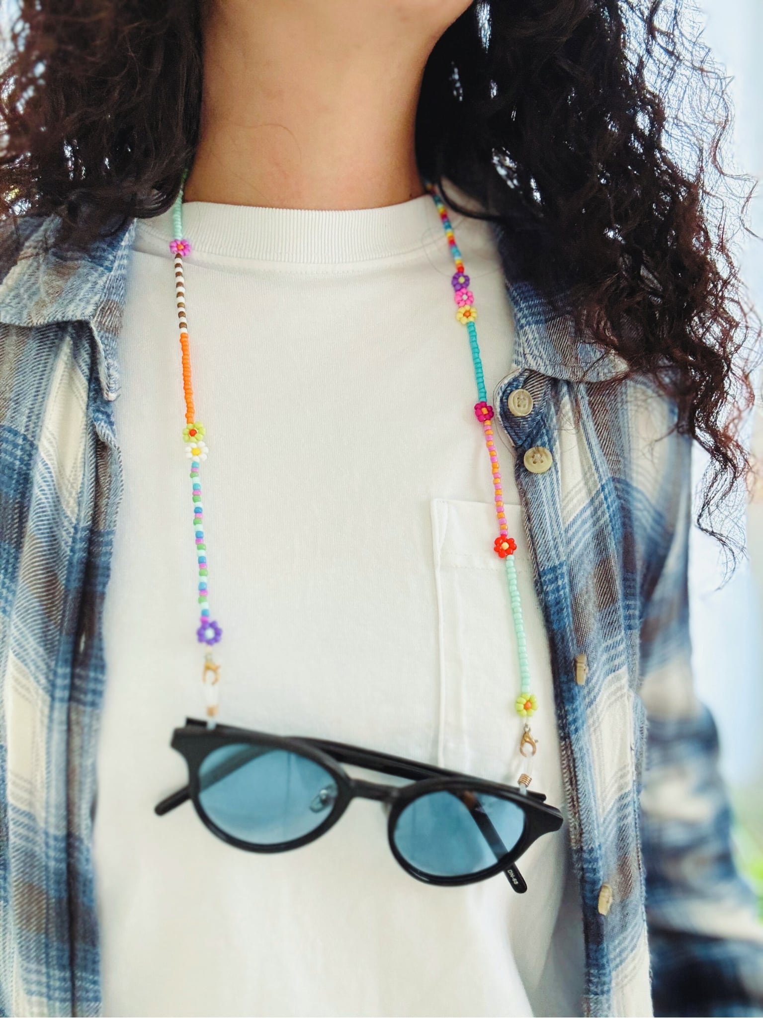 素材:シードビーズ・シリコン(メガネ留め)・ワックスコード
